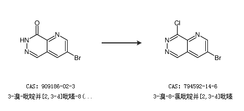 1.通過(guò)3-溴-吡啶并[2,3-d]吡嗪-8(7H)-酮合成3-溴-8-氯吡啶并[2,3-d]吡嗪