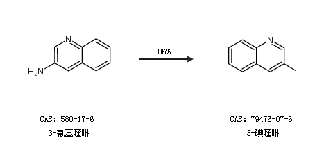 2.通過3-氨基喹啉合成3-碘喹啉,收率約86%;