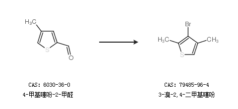 2.通過(guò)4-甲基噻吩-2-甲醛合成3-溴-2,4-二甲基噻吩