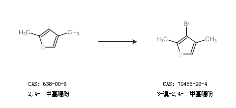 1.通過(guò)2,4-二甲基噻吩合成3-溴-2,4-二甲基噻吩