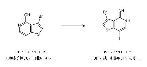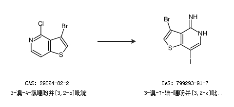 2.通過3-溴-4-氯噻吩并[3,2-c]吡啶合成3-溴-7-碘-噻吩并[3,2-c]吡啶-4-胺