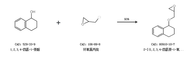 1.通過1,2,3,4-四氫-1-萘酚和環(huán)氧氯丙烷合成2-[(1,2,3,4-四氫萘-1-氧基)甲基]環(huán)氧乙烷,收率約93%;