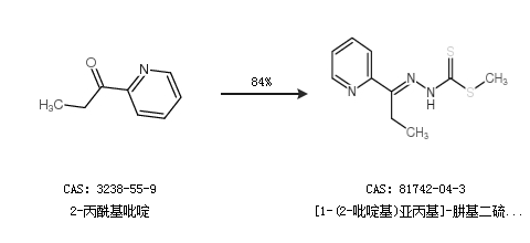 1.通過2-丙?;拎ず铣蒣1-(2-吡啶基)亞丙基]-肼基二硫代羧酸甲酯,收率約84%;