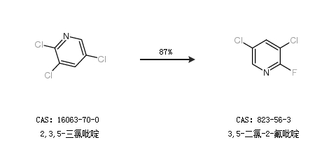 1.通過2,3,5-三氯吡啶合成3,5-二氯-2-氟吡啶,收率約87%;