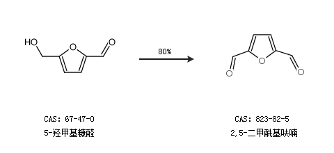 1.通過5-羥甲基糠醛合成2,5-二甲酰基呋喃,收率約95%;