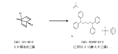 1.通過2,5-降冰片二烯合成(二環(huán)[2.2.1]庚-2,5-二烯)[1,4-二(二苯基膦基)丁烷]四氟硼酸銠(I)