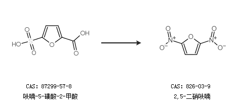2.通過(guò)呋喃-5-磺酸-2-甲酸合成2,5-二硝呋喃