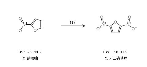 1.通過(guò)2-硝呋喃合成2,5-二硝呋喃,收率約51%;