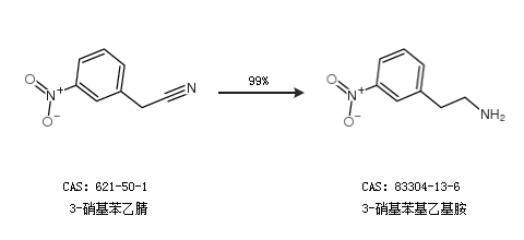 1.通過(guò)3-硝基苯乙腈合成3-硝基苯基乙基胺,收率約99%;