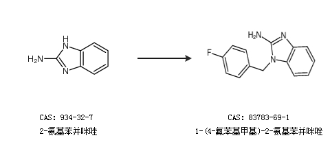 2.通過2-氨基苯并咪唑合成1-(4-氟苯基甲基)-2-氨基苯并咪唑