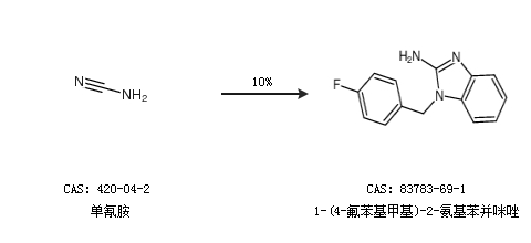 1.通過單氰胺合成1-(4-氟苯基甲基)-2-氨基苯并咪唑,收率約10%;