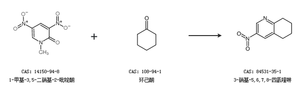 2.通過1-甲基-3,5-二硝基-2-吡啶酮和環(huán)己酮合成3-硝基-5,6,7,8-四氫喹啉