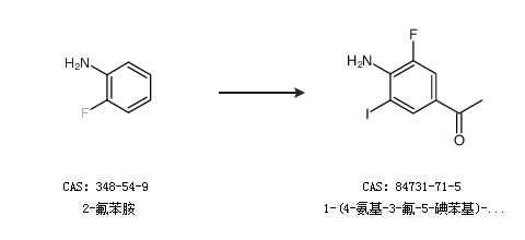 2.通過2-氟苯胺合成1-(4-氨基-3-氟-5-碘苯基)-1-乙酮