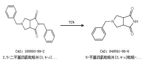 2.通過(guò)2,5-二芐基四氫吡咯并[3,4-c]吡咯-1,3-二酮合成5-芐基四氫吡咯并[3,4-c]吡咯-1,3(2H,3ah)-二酮,收率約72%;