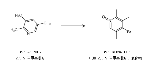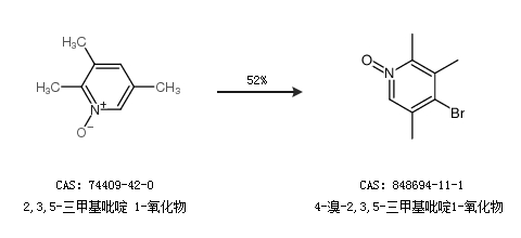 1.通過2,3,5-三甲基吡啶 1-氧化物合成4-溴-2,3,5-三甲基吡啶1-氧化物,收率約52%;