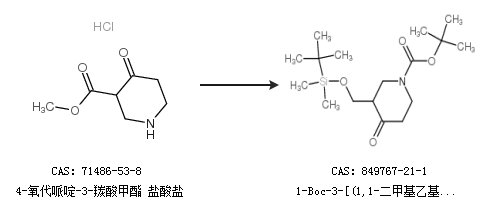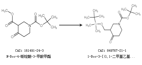 2.通過N-Boc-4-哌啶酮-3-甲酸甲酯合成1-Boc-3-[(1,1-二甲基乙基) 二甲基甲硅烷基氧基甲基]-哌啶-4-酮