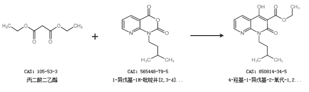 2.通過丙二酸二乙酯和1-異戊基-1H-吡啶并[2,3-d][1,3]噁嗪-2,4-二酮合成4-羥基-1-異戊基-2-氧代-1,2-二氫-1,8-萘啶-3-羧酸乙酯