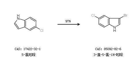 1.通過5-氯吲哚合成3-溴-5-氯-1H-吲哚,收率約97%;