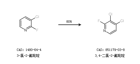 1.通過3-氯-2-氟吡啶合成3,4-二氯-2-氟吡啶,收率約80%;