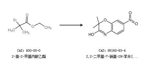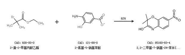 2.通過(guò)2-溴-2-甲基丙酸乙酯和2-氨基-5-硝基苯酚合成2,2-二甲基-7-硝基-2H-苯并[b][1,4]噁嗪-3(4h)-酮,收率約62%;