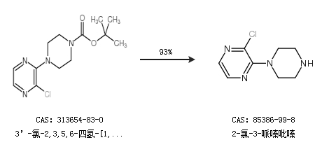 1.通過3’-氯-2,3,5,6-四氫-[1,2’]聯(lián)吡啶-4-羧酸叔丁酯合成2-氯-3-哌嗪吡嗪,收率約93%;