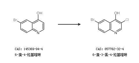 1.通過6-溴-4-羥基喹啉合成6-溴-3-氯-4-羥基喹啉