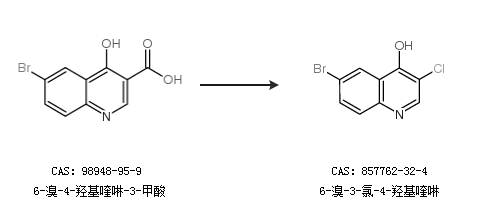 2.通過6-溴-4-羥基喹啉-3-甲酸合成6-溴-3-氯-4-羥基喹啉