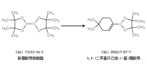 1.通過(guò)聯(lián)硼酸頻那醇酯合成4,4-(二甲基環(huán)己烯-1-基)硼酸頻那醇酯
