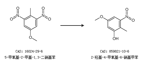 1.通過(guò)5-甲氧基-2-甲基-1,3-二硝基苯合成2-羥基-4-甲氧基-6-硝基甲苯