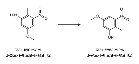 2.通過(guò)2-氨基-4-甲氧基-6-硝基甲苯合成2-羥基-4-甲氧基-6-硝基甲苯