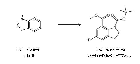 1.通過吲哚啉合成1-n-boc-5-溴-2,3-二氫-1H-吲哚-7-羧酸甲酯