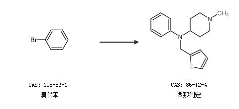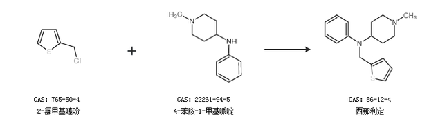 2.通過2-氯甲基噻吩和4-苯胺-1-甲基哌啶合成西那利定