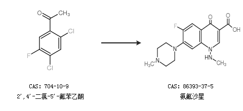 2.通過2'',4''-二氯-5''-氟苯乙酮合成氨氟沙星