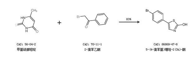 1.通過甲基硫脲嘧啶和2-溴苯乙酮合成5-(4-溴苯基)噻唑-2(3h)-酮,收率約83%;