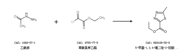 1.通過乙酰肼和草酰氯單乙酯合成5-甲基-1,3,4-噻二唑-2-羧酸乙酯