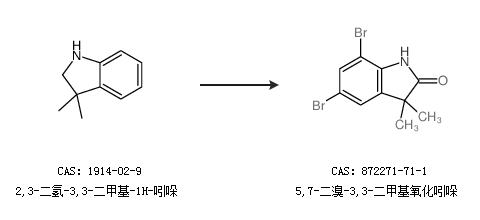 1.通過2,3-二氫-3,3-二甲基-1H-吲哚合成5,7-二溴-3,3-二甲基氧化吲哚