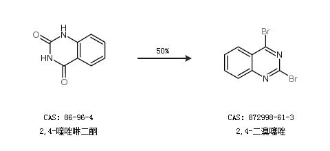 1.通過(guò)2,4-喹唑啉二酮合成2,4-二溴噻唑,收率約50%;