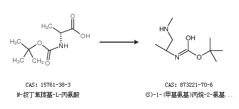 2.通過N-叔丁氧羰基-L-丙氨酸合成(S)-1-(甲基氨基)丙烷-2-氨基甲酸叔丁酯