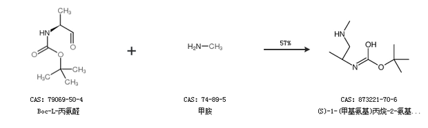 1.通過Boc-L-丙氨醛和甲胺合成(S)-1-(甲基氨基)丙烷-2-氨基甲酸叔丁酯,收率約57%;