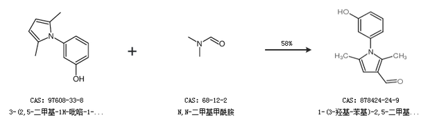 1.通過(guò)3-(2,5-二甲基-1H-吡咯-1-基)苯酚和N,N-二甲基甲酰胺合成1-(3-羥基-苯基)-2,5-二甲基-1H-吡咯-3-甲醛,收率約58%;