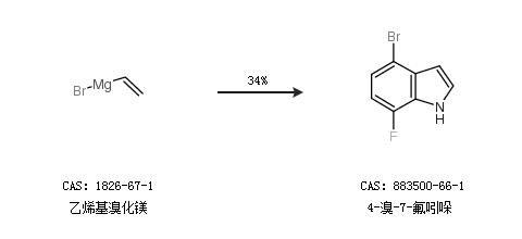 1.通過乙烯基溴化鎂合成4-溴-7-氟吲哚,收率約34%;