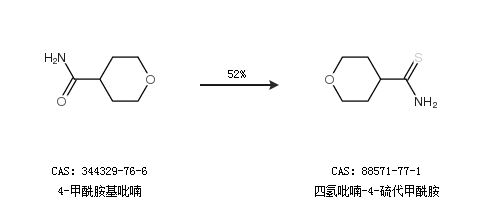 1.通過4-甲酰胺基吡喃合成四氫吡喃-4-硫代甲酰胺,收率約52%;