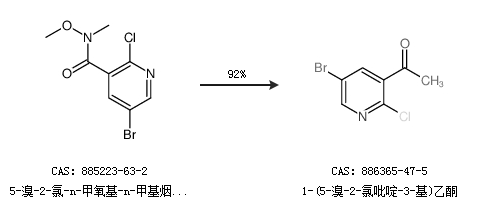 1.通過5-溴-2-氯-n-甲氧基-n-甲基煙酰胺合成1-(5-溴-2-氯吡啶-3-基)乙酮,收率約92%;