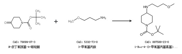 1.通過N-叔丁氧羰基-4-哌啶酮和3-甲氧基丙胺合成1-Boc-4-(3-甲氧基丙基氨基)哌啶