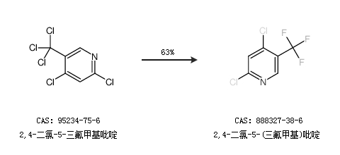 1.通過2,4-二氯-5-三氟甲基吡啶合成2,4-二氯-5-(三氟甲基)吡啶,收率約63%;