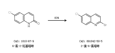 1.通過6-氯-2-羥基喹啉合成2-溴-6-氯喹啉,收率約83%;