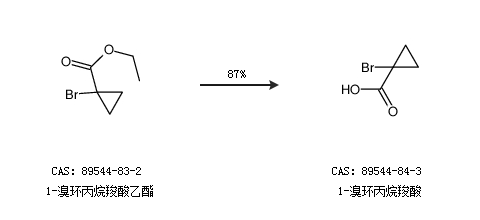 1.通過(guò)1-溴環(huán)丙烷羧酸乙酯合成1-溴環(huán)丙烷羧酸,收率約87%;
