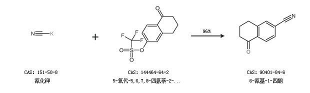 2.通過氰化鉀和5-氧代-5,6,7,8-四氫萘-2-基 三氟甲烷磺酸合成6-氰基-1-四酮,收率約96%;