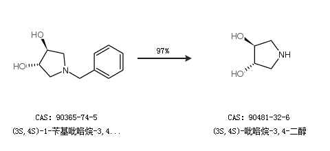 1.通過(3S,4S)-1-芐基吡咯烷-3,4-二醇合成(3S,4S)-吡咯烷-3,4-二醇,收率約97%;
