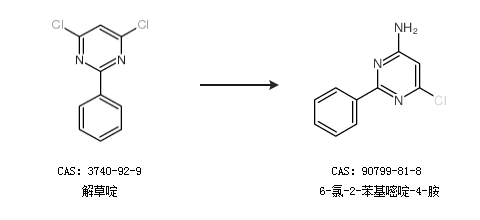 1.通過解草啶合成6-氯-2-苯基嘧啶-4-胺
